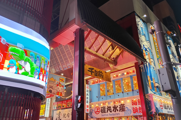 La cafetería está situada en la calle comercial cerca de Shinsekai, una de las famosas atracciones turísticas de Osaka,