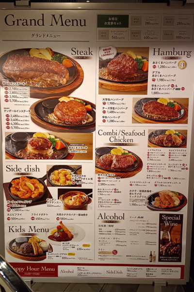 Además de las hamburguesas del estudiante (gakusei), se ofrecen otros platos atractivos.