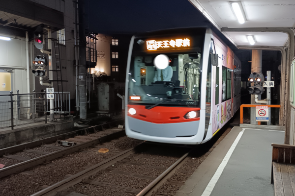 先の写真に掲載されている車両が折り返し天王寺駅前行きとして走ります。