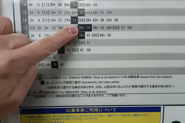 こちらが我孫子道停留所の上り電車の時刻表です。