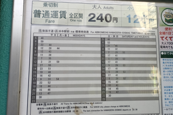 大阪府堺市西区の浜寺駅前停留所までを結ぶ路線です。