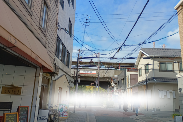 ここを辿ると先程ご紹介した串カツ店が入居する住吉公園駅舎に着きます。
