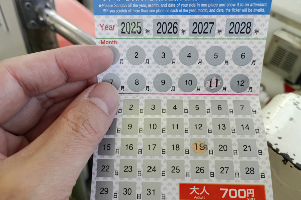 削った状態のこちらの券を降車時に運転手さんに提示して下さい。